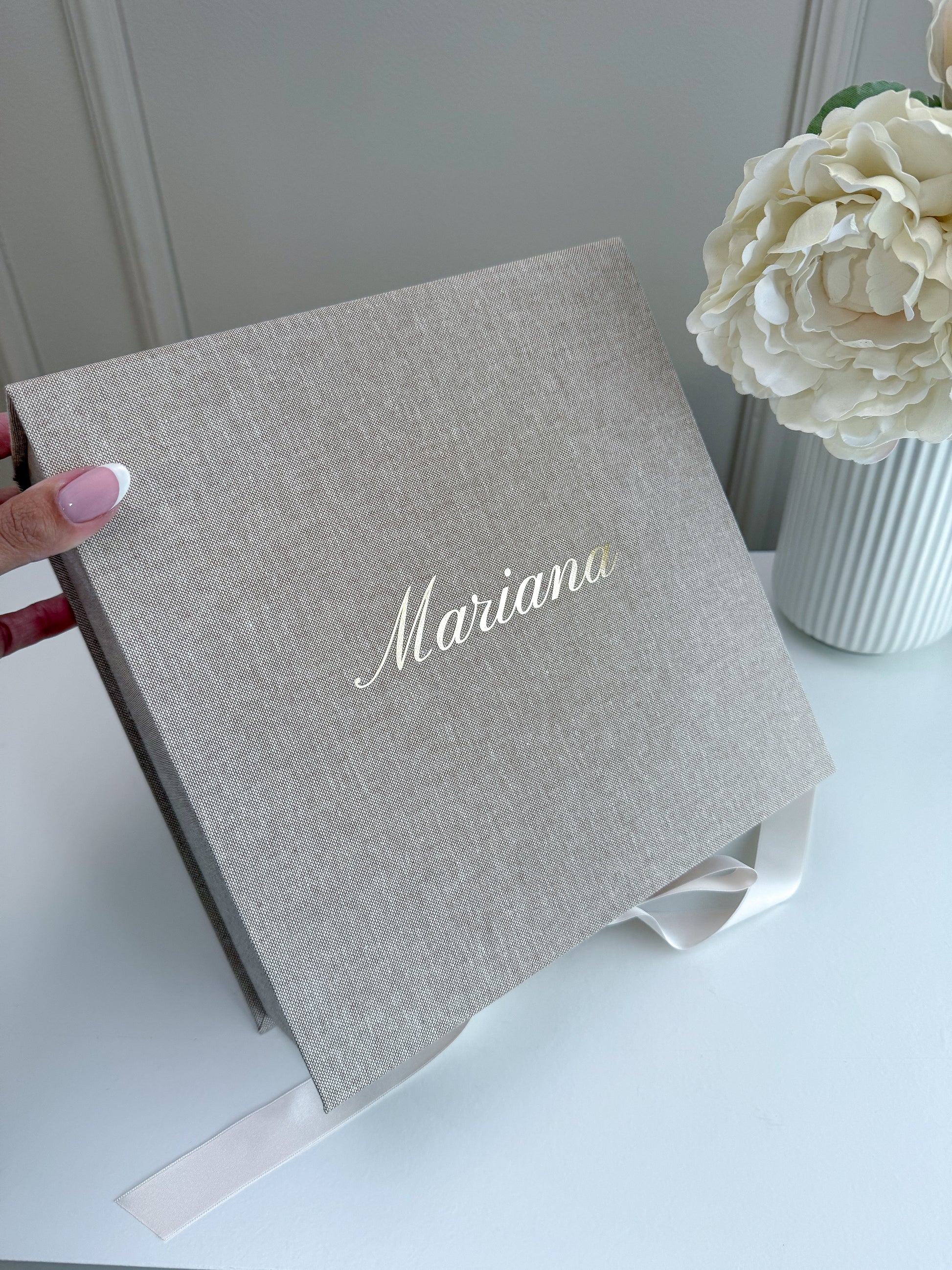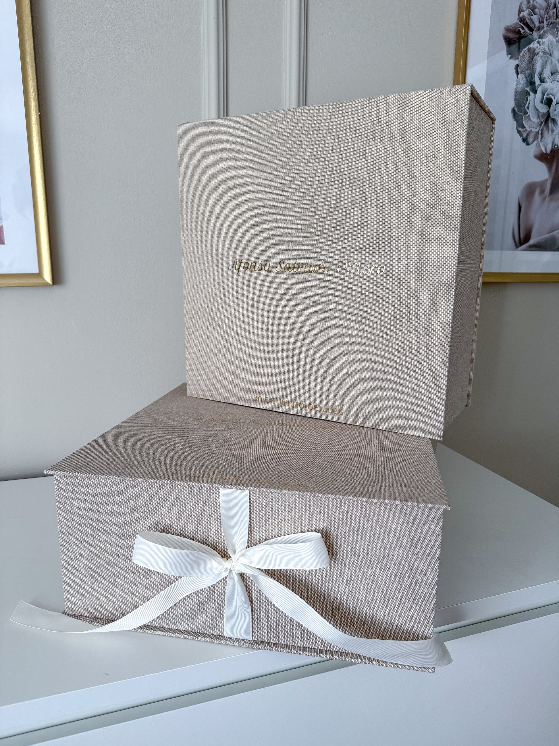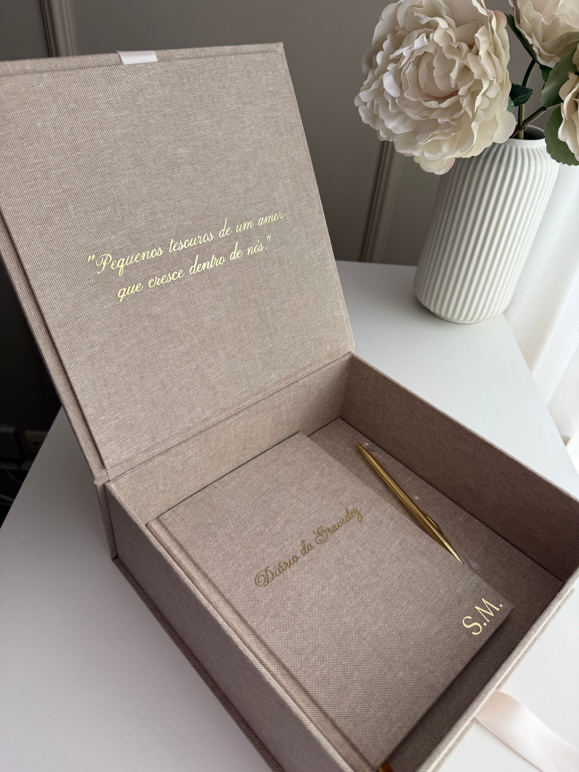 Feita em linho premium, com acabamento impecável e personalização exclusiva, esta caixa torna-se um verdadeiro tesouro de família, onde cada detalhe é pensado para guardar lembranças que aquecem o coração ao longo dos anos.