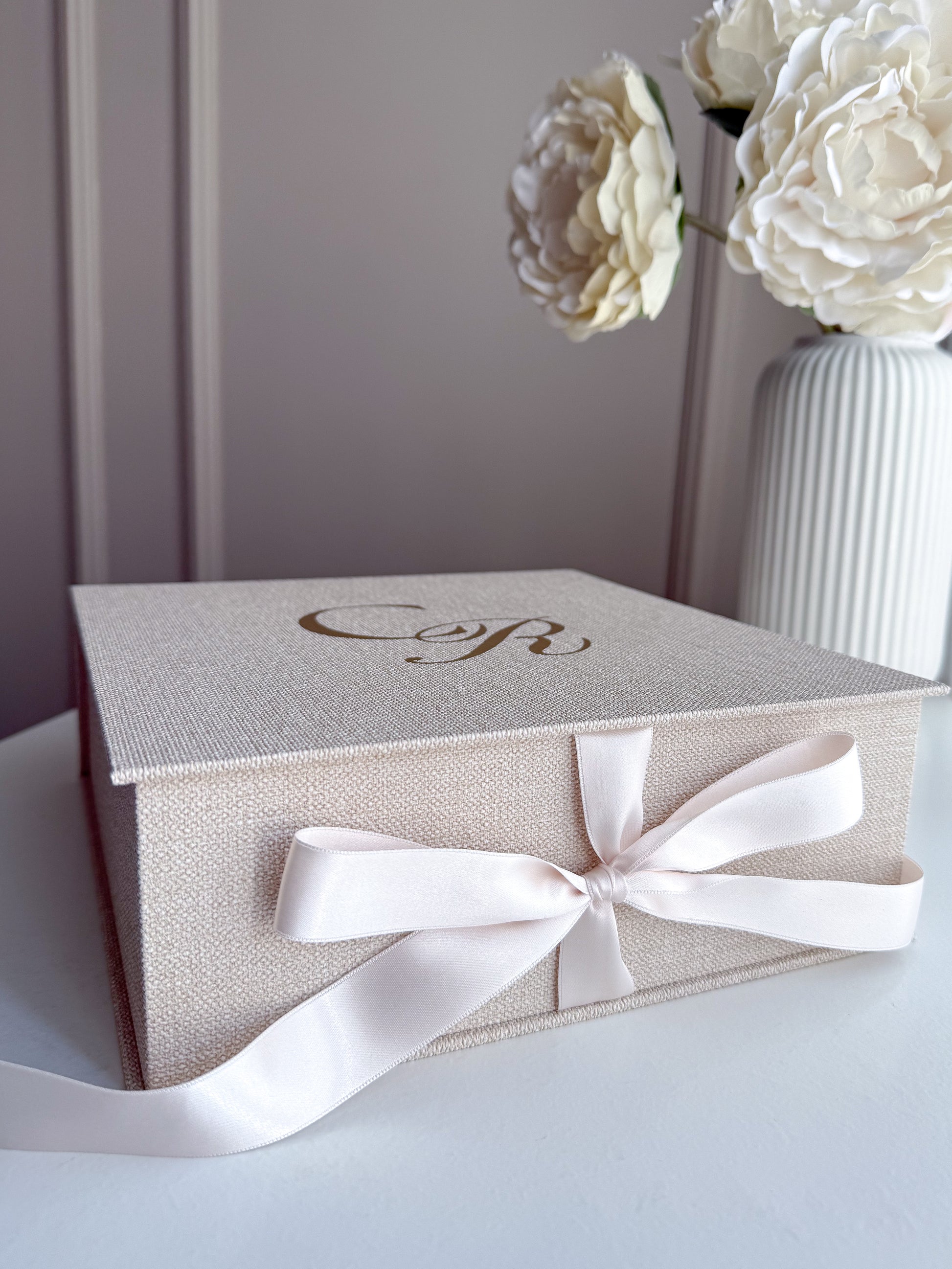 - Caixa revestida em tela premium padronagem linho tamanho M;